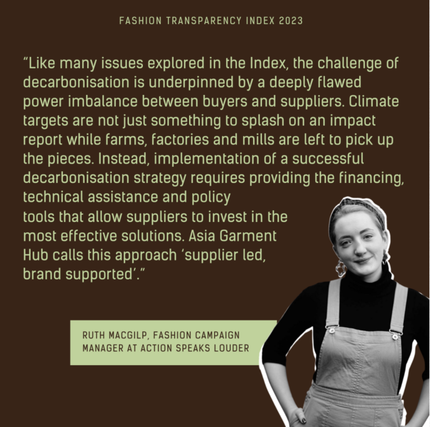 Supplier led, brand supported: Experts discuss the green transition In July, we launched our eighth edition of the Fashion Transparency Index, a tool we use to incentivise the world’s largest fashion brands and retailers to disclose more information abou