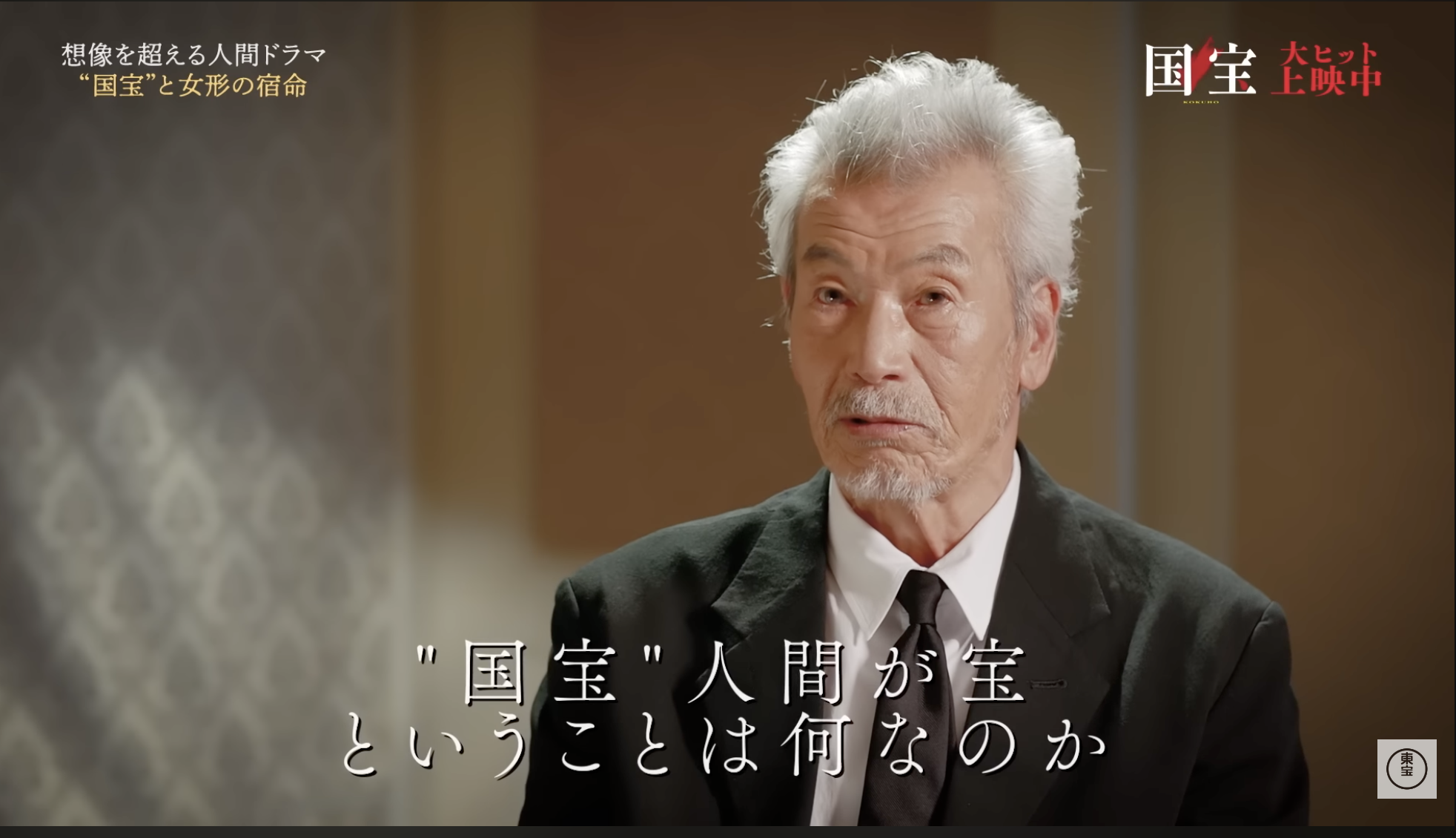 국보 공개기념 특별방송에서 출연자들 인터뷰영상이 나오는데 이 영화를 보면서 전반적으로 배우들의 얼굴이 너무 아름답다는 느낌을 받았었고, 뭔가 "너무" 아름답다는 느낌을 받았었는데 그중 한 명은 유난히 조금 으스스하고 공포스러운, 무서운 느낌을 주는 인물이 있었다. 만 키쿠였다. 만키쿠는 키쿠오 이전에 인간국보로 지정된 인물로 "인간국보였지만 현실은 그렇게 녹록지 않아"라는 대사에서 알 수 있듯이 한평 남짓한 여인숙에서 생을 마감하는 현실에서는 초라해도 예술세계에서는 어떤 경지에 이른 인물이다. 이 배우를 연기한 다나카 료라는 배우가 계속 잔상이 남는 이유는 그가 연기한 예술의 이면, 그 공허함이 짙게 남기 때문일 것이다.