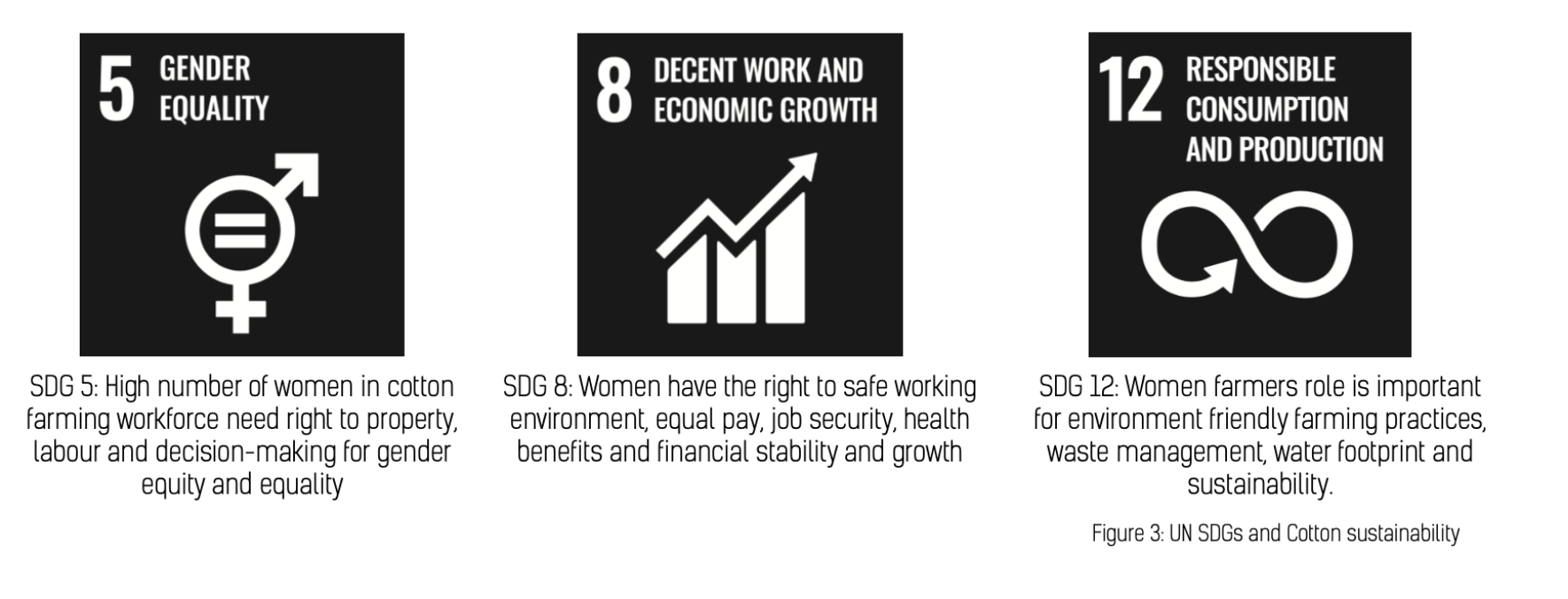 면화는 전 세계 섬유 생산량의 거의 4분의 1을 차지한다. 특히 인도는 전 세계 면화 생산량의 22%를 차지하며 면화 재배 면적이 가장 넓다(전 세계 면화 재배 면적의 30%)면화의 공급망은 면화 농장에서 시작하여 소규모 농부, 제분소, 생산 공장, 소매점, 최종적으로 소비자에게 이르는 원단 및 의류 제품으로 끝난다. 이 초기 면화 생산과정에서 대부분의 역할을 하는 여성농부들은 사회적 규범에 따라 핵심구성원이되어 지식을 공유받거나 의사결정을 할 수 없다. 이것이 면화의 지속가능성 개선에는 성별영향이 들어가야 하는 이유이다. 현장에서 더 오랜시간 면화 재배에 투입되지만 중요한 이해관계로 간주되지 않으며 의사결정에서 그들의 의견은 면화의 수확량과 의사결정에 매우 중요한 영향을 줄 수 있다. 그러나 많은 농업 공동체에서 농부로서의 여성의 역할은 종종 인정받지 못하고 있으며, 남성 농부에 비해 자원에 대한 접근성이 떨어진다. 유엔식량농업기구에 따르면 여성이 농업 공동체에서 남성과 동일한 자원에 접근할 수 있다면 수확량을 20~30% 향상시킬 수 있는 것으로 추정된다.(현재 인도의 정부 정책은 토지를 소유한 농부들을 중심으로 만들어졌으며 여성을 농부로 인정하지 않는다.인도 농업 시스템 내의 뿌리 깊은 성차별은 여성이 농사를 짓는 토지를 소유하지 못하게 하기 때문이다.공식적으로 인정받지 못하는 노동력, 남녀 간의 현저한 임금 격차, 토지 권리, 교육 및 훈련의 부족, 최적이 아닌 근무 조건 등 인도 면화 농업 부문에서 여성은 여러 가지 어려움에 직면해 있다. 여성이 직면한 문제는 농작물의 전반적인 성과(예: 생산물의 일관성, 면화의 품질, 지속 가능성, 환경에 미치는 영향, 면화의 물 발자국 등)와 전체 면화 공급망에 영향을 미친다.