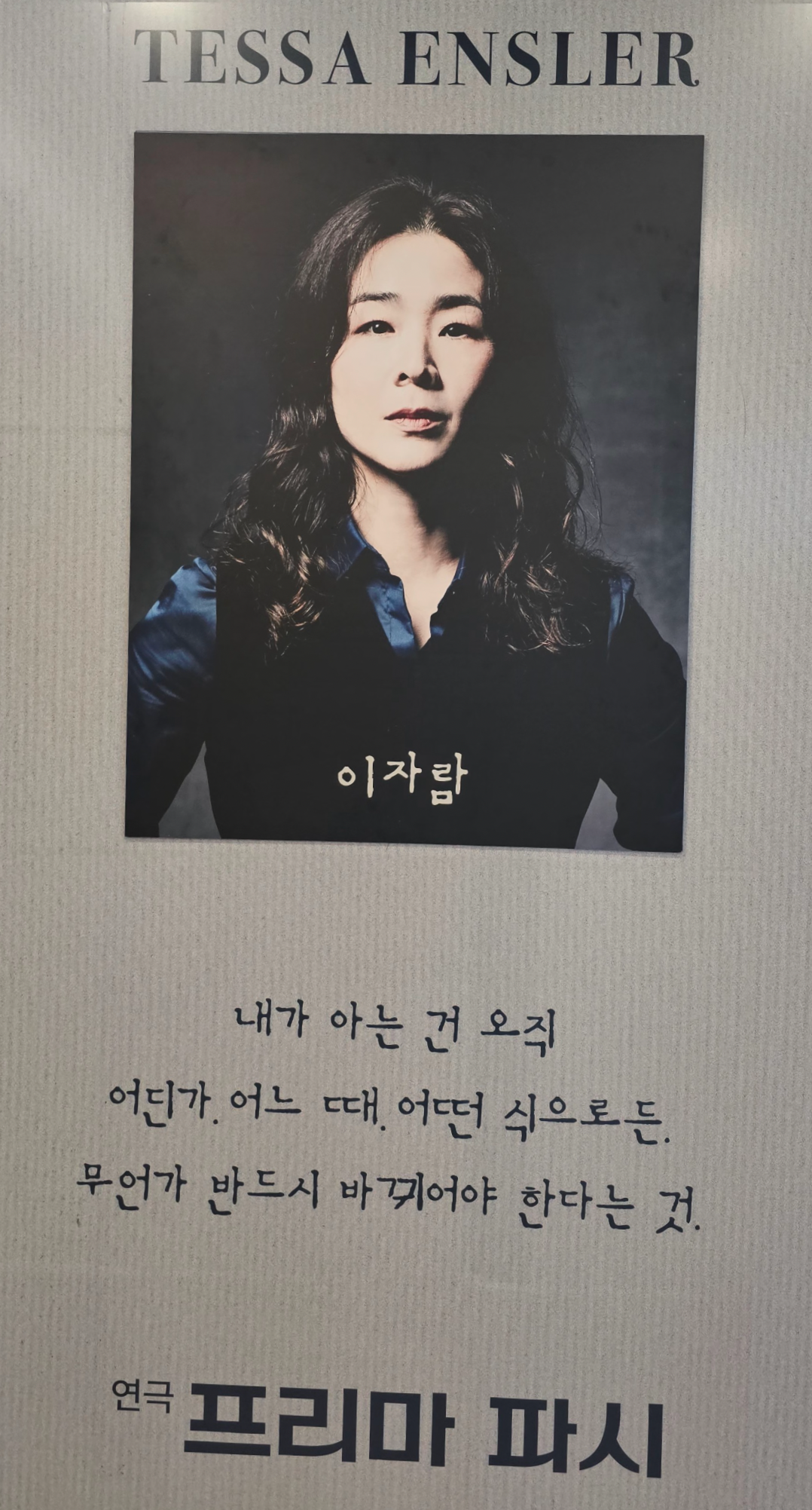 이자람은 무대 위에서 변호사, 피해자, 증인, 판사 등 다양한 인물을 혼자서 표현한다. 시선 처리, 말투, 표정, 제스처를 정교하게 조절해 인물 간의 경계를 명확히 하고, 쉬는 틈 없이 관객(배심원으로 상징됨)과 끊임없이 소통하며 극에 몰입하게 만든다. 특히 대사량이 방대하고 속도감이 매우 빠른 전개 속에서, 변호사로서 사건을 논리적으로 풀어내는 장면과 피해자로서 억울함을 토로하는 장면의 대비가 극적으로 드러난다. 이 두 스타일의 전환은 극의 감정선과 긴장감을 극대화하며, 관객으로 하여금 120분 내내 무대에서 눈을 뗄 수 없게 만든다. <프리마 파시>는 단순한 법정 드라마를 넘어, ‘정의란 무엇인가’, 그리고 ‘진실은 어디에 있는가’라는 질문을 정면으로 던진다. 이자람의 압도적인 1인 연기와 판소리로 다져진 발성과 리듬감, 그리고 치밀한 감정선은 공연의 메시지를 더욱 강렬하게 전달한다. 법과 사회, 진실과 정의의 틈을 날카롭게 드러내는 이 작품은, 관객에게 깊은 여운과 질문을 남긴다.
