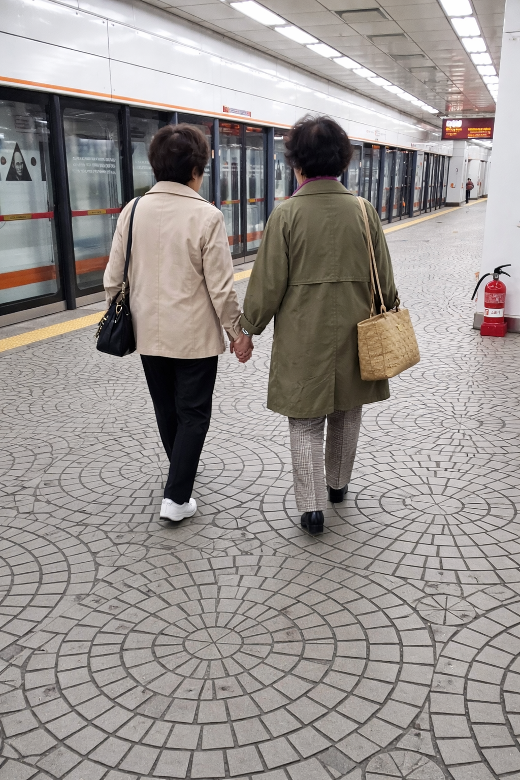 They stood in the middle of the platform, holding each other’s hands for quite a while. Perhaps they had planned to meet somewhere near the station, and simply ran into each other as they got off the train. The older one didn’t say much. The younger one kept touching her, as if to confirm that she was really there. Watching them, I found myself thinking of my own friends. There was something quietly moving about the moment.