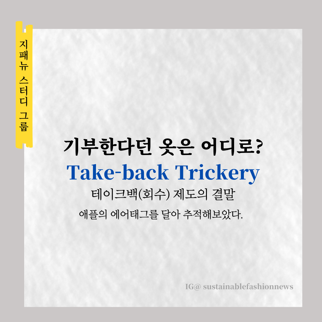 2023년 7월 23일 - 재사용 또는 재활용을 위해 주요 패션 매장에 기부된 의류의 4분의 3이 실제로는 폐기되거나 창고에 버려지거나 아프리카의 불확실한 미래로 보내진다는 대규모 추적 조사 결과가 나왔다. NGO를 지원하는 체인징 마켓 재단은 Apple 에어태그를 사용하여 21개의 완벽한 상태의 코트, 바지, 재킷 및 기타 중고 의류가 테이크백 제도를 통과할 때 이를 추적했다. 이들의 브랜드는 "옷에 두 번째 생명을 불어넣어주세요", "루프를 닫자", "원을 완성하자"라는 슬로건을 내걸고 옷을 회수받았다.